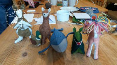 A kész figurák általában kedvenc állatok, játékok, évszakasztalra kerülő, ünnepkört mutató figurák (egészen Máriától és Józseftől, az őszi erdőben surranó rókán, őzen át, a zajtalan, de a természet békéjét őrző tündérek, a szorgos törpék, manók sokasága).